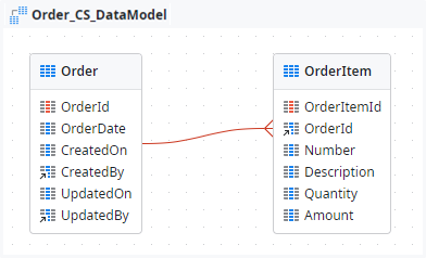 Both OrderId and OrderItemId use a Text data type with a length of 36. This choice aligns with the use of GUIDs as identifiers.