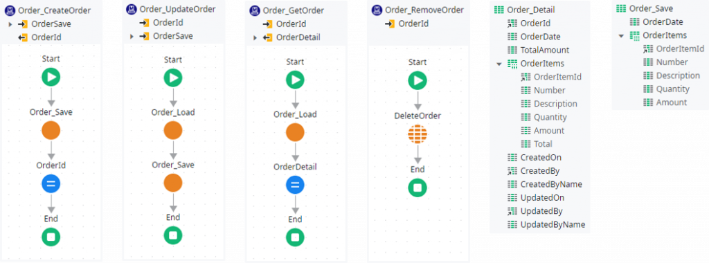 As depicted in the figure above, the flows of the public server actions are relatively straightforward. The actual heavy lifting occurs through the invocation of two non-public server actions: Order_Load and Order_Save. In this section, we will delve into these essential components.