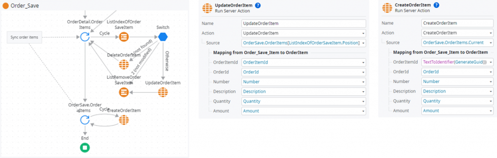 Subsequently, the server action proceeds to loop through the remaining order items in OrderSave. These are items that were not present in the loaded database state but need to be created. For each of these items, the action CreateOrderItem is invoked to facilitate their creation in the database.