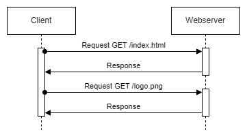 As shown in the diagram above, communication always starts with a request from the client and is then concluded with a response from the server. This fits in very well with the design of the web, in which servers offer their information and services at a publicly known address. Clients, on the other hand, are typically located behind a firewall and precisely should not be called from an outside party.