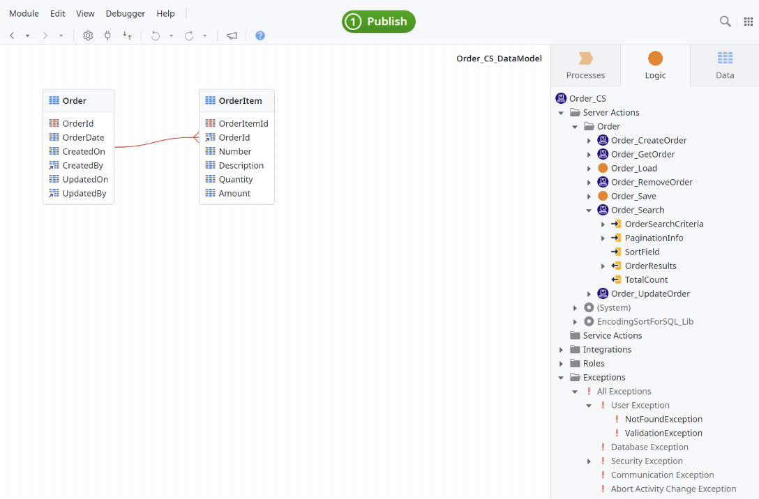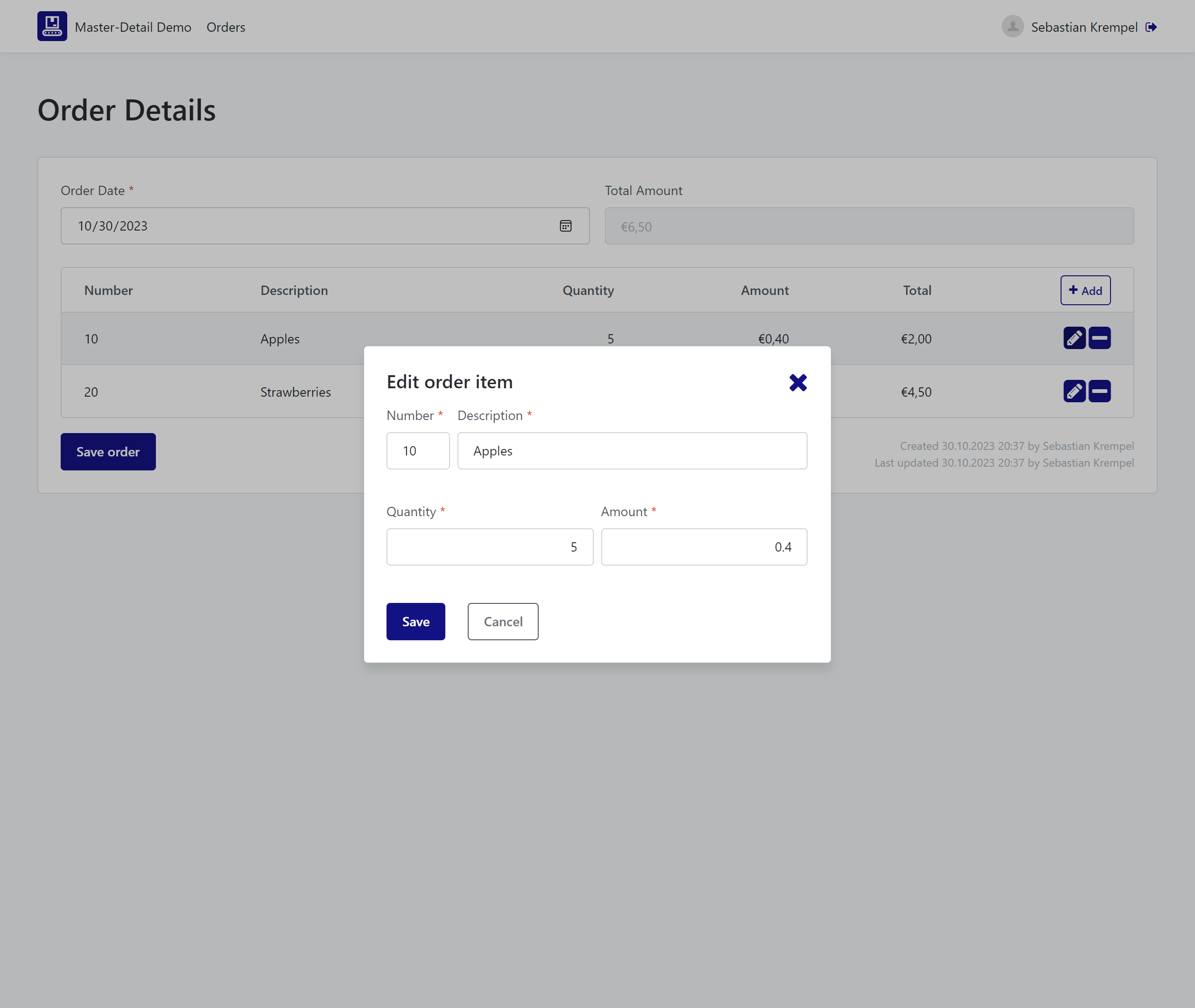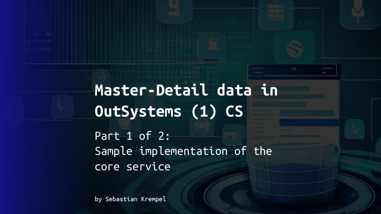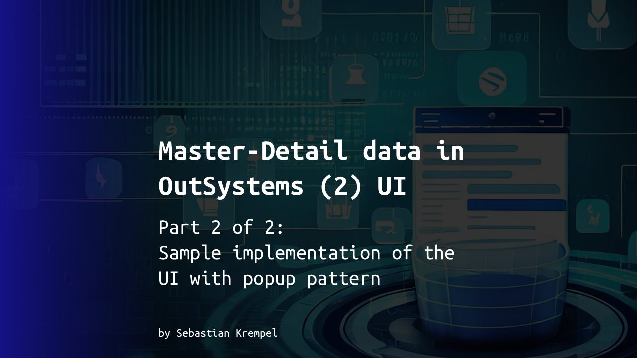 In lots of my OutSystems projects I came across master-detail data structures. This sample app consists of a core service to manage purchase orders and their related order items and an user interface module demonstrating a pattern for locally editing sub items (here: order items) via a popup dialog. Also it implements a paginated list view with search functionality and SQL-injection-safe dynamic sorting.